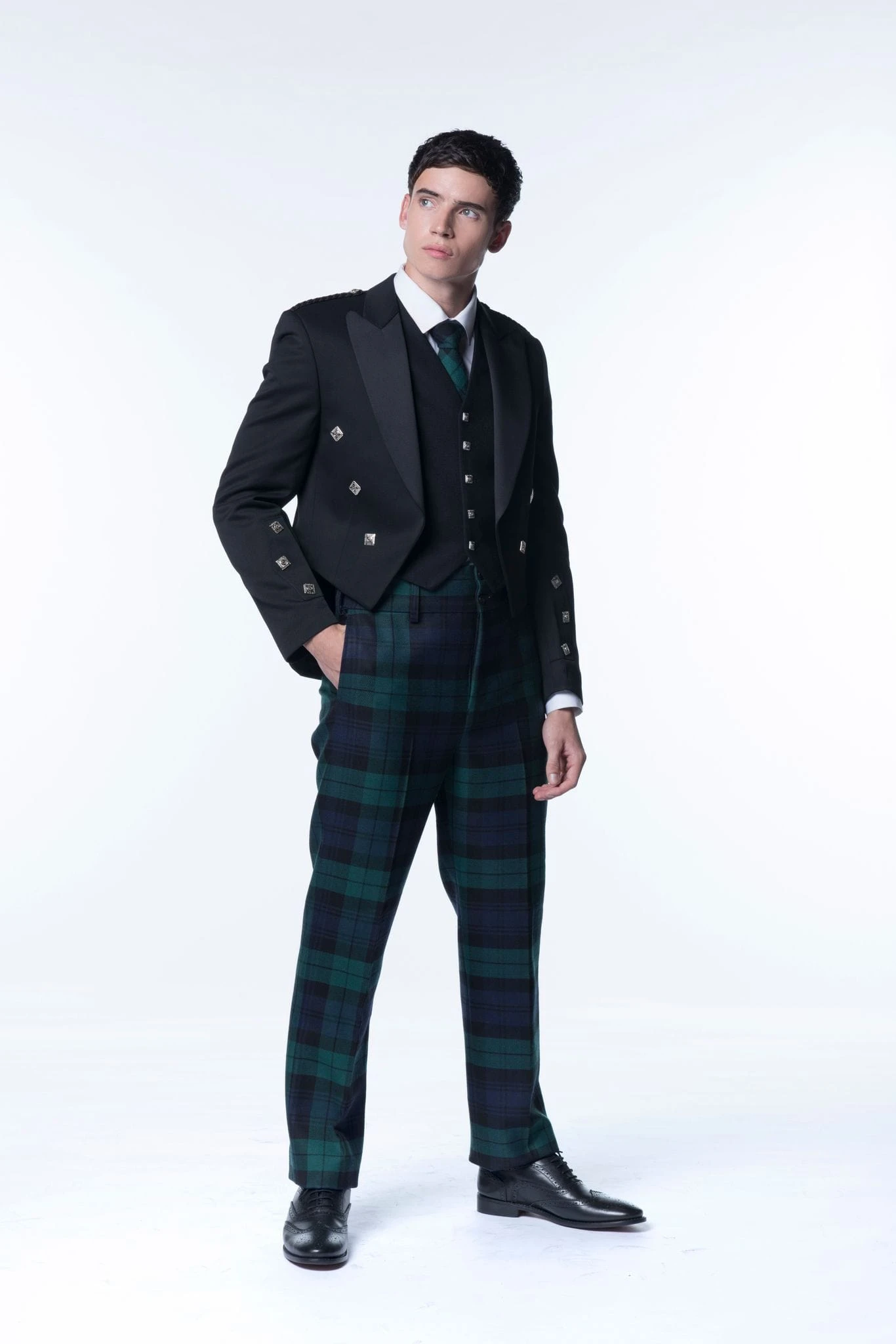 Tartan Trews are traditionally worn with a Prince Charlie Jacket for formal events, however a more casual Tweed Kilt Jacket can also be worn to any occasion.