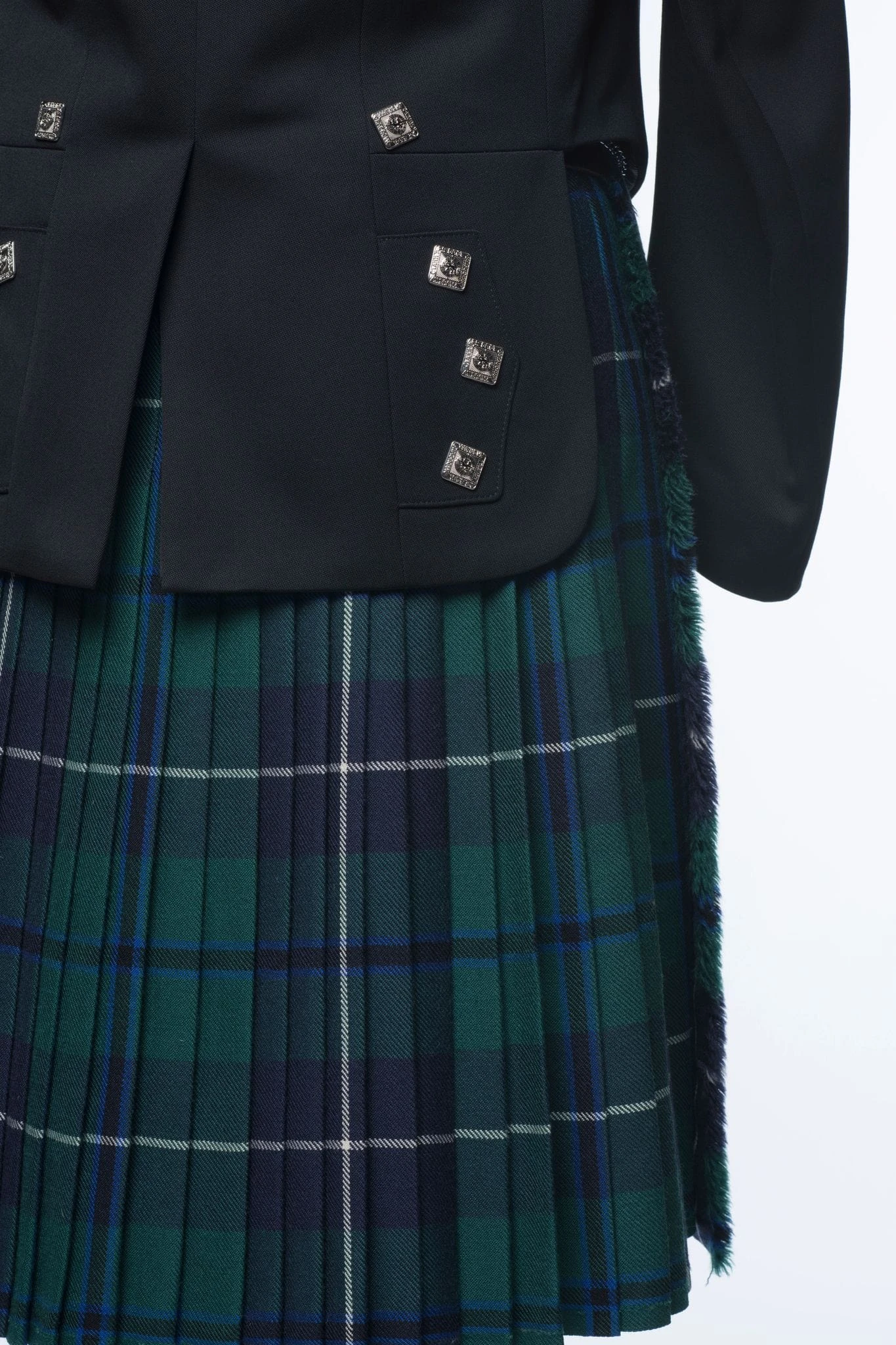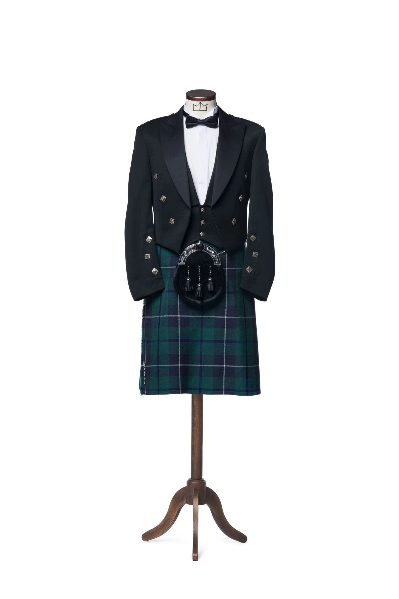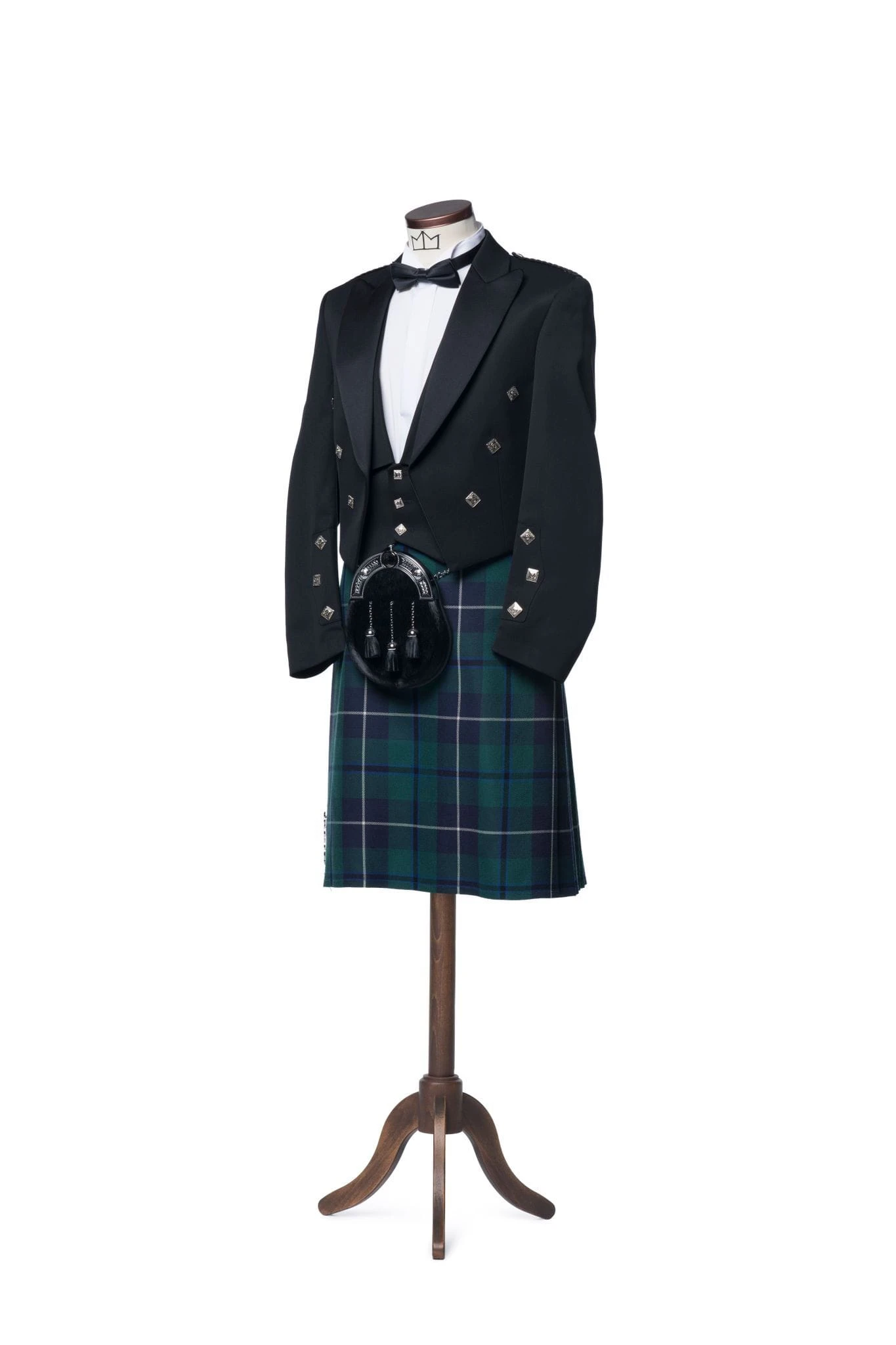 The outfit package comes with an 8-yard kilt, traditional Prince Charlie jacket with classic 3 button waistcoat and accessories which include leather ghillie brogues, dress sporran, kilt socks, flashes, replica sgian dubh and kilt pin.