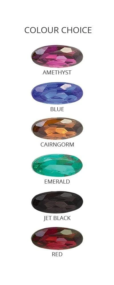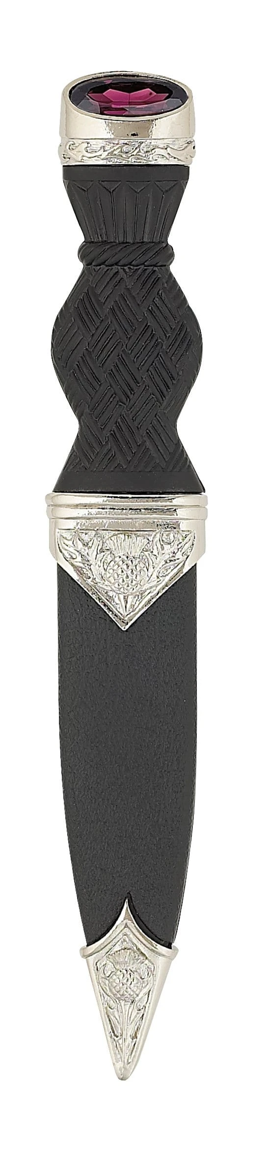 The Sgian Dubh can either have a plain or stone colour top with the choice of amethyst, black, blue, cairngorm, emerald or red.