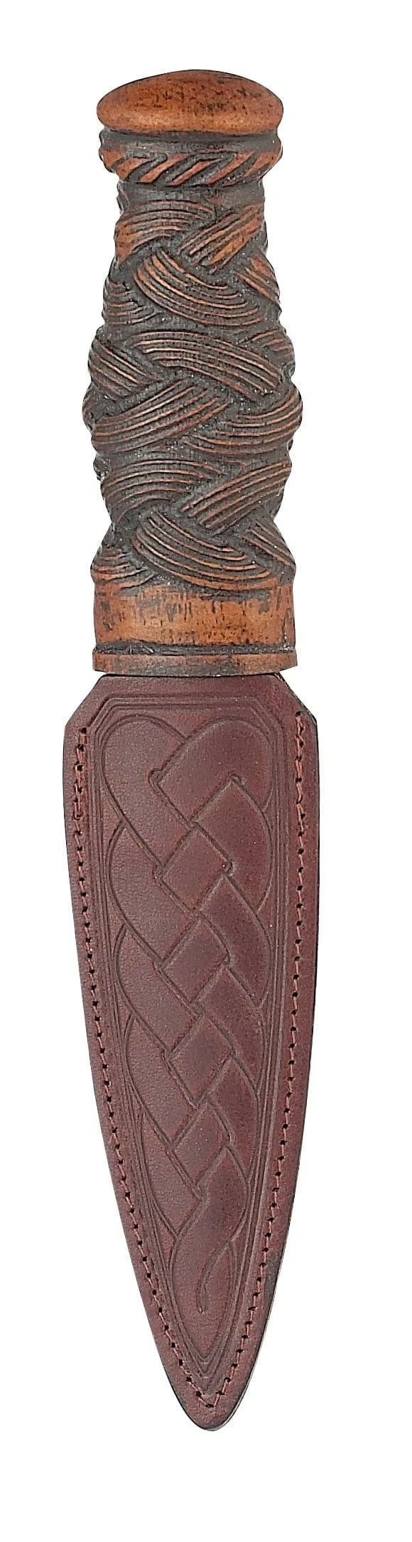 The Weave Handle Sgian Dubh with Leather Sheath is a classic design, which will complement any outfit.